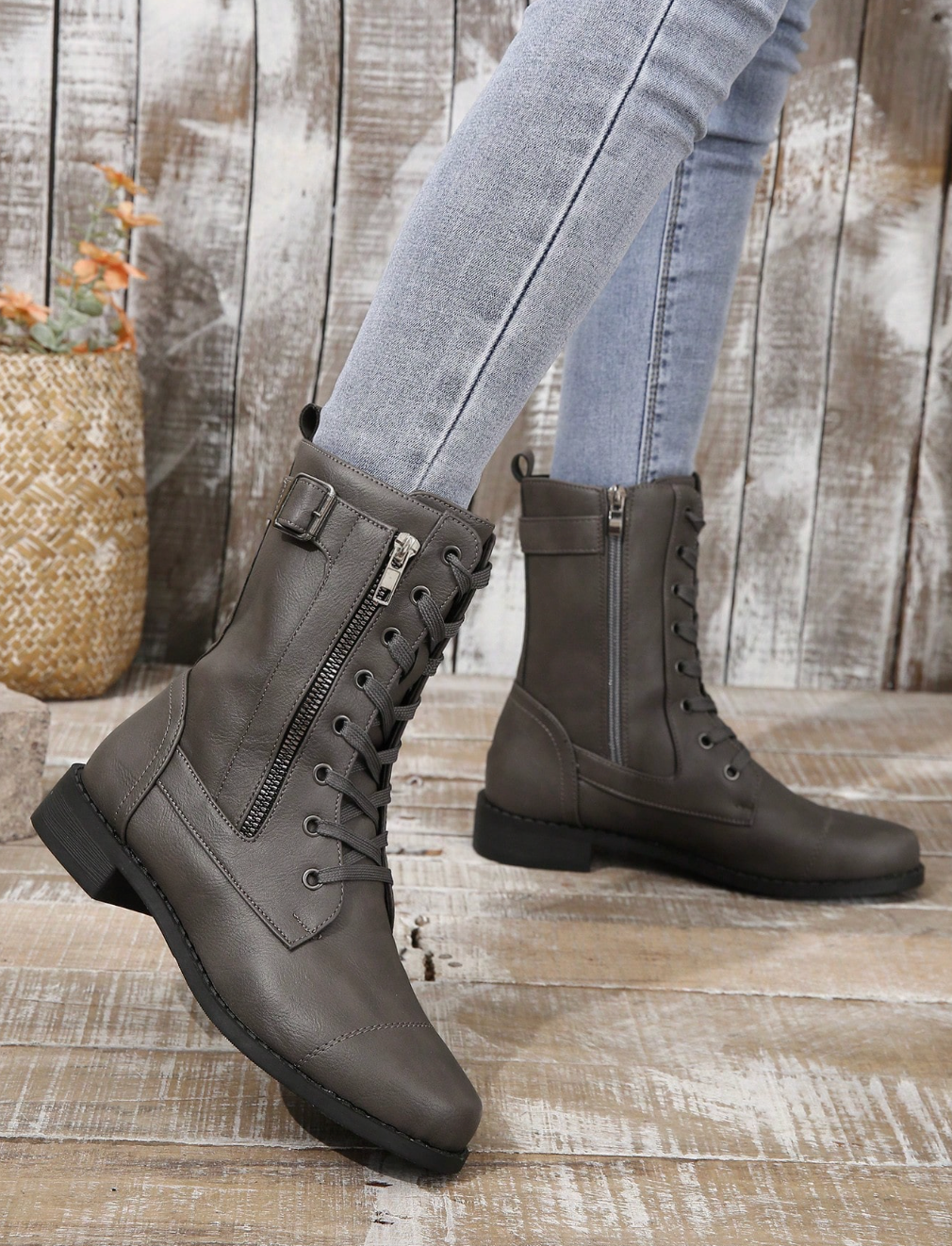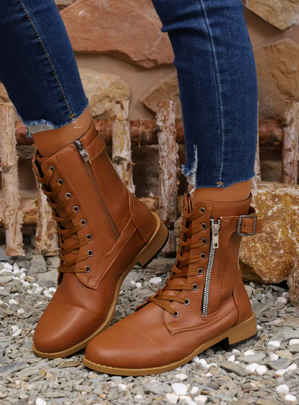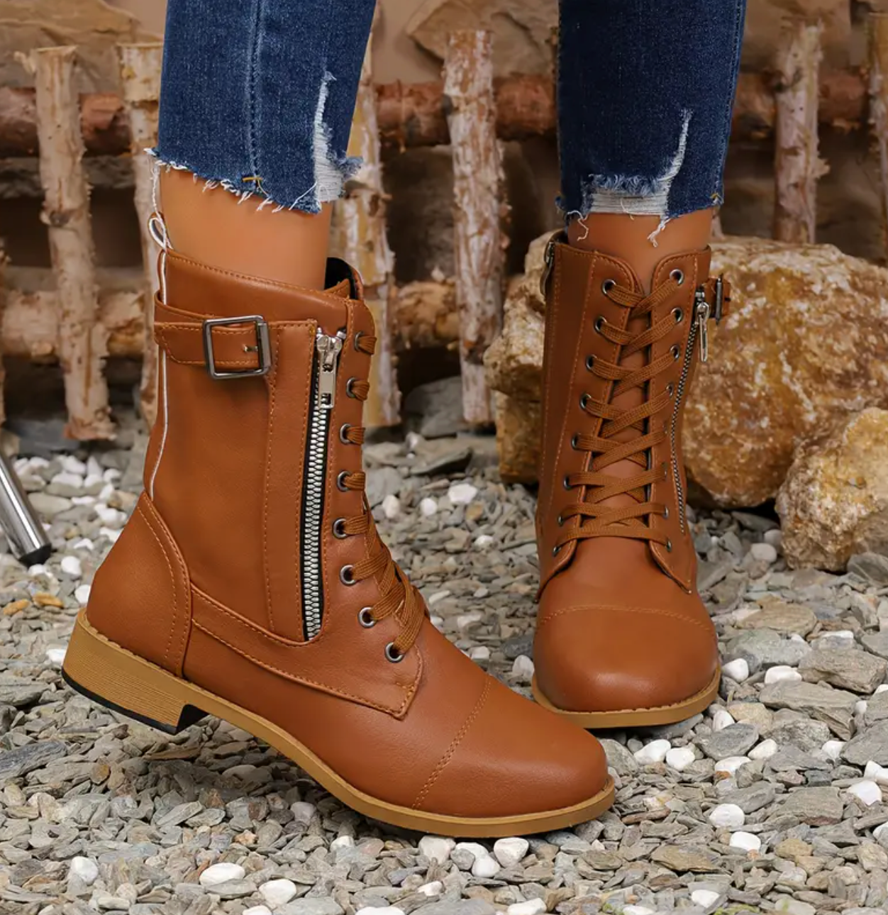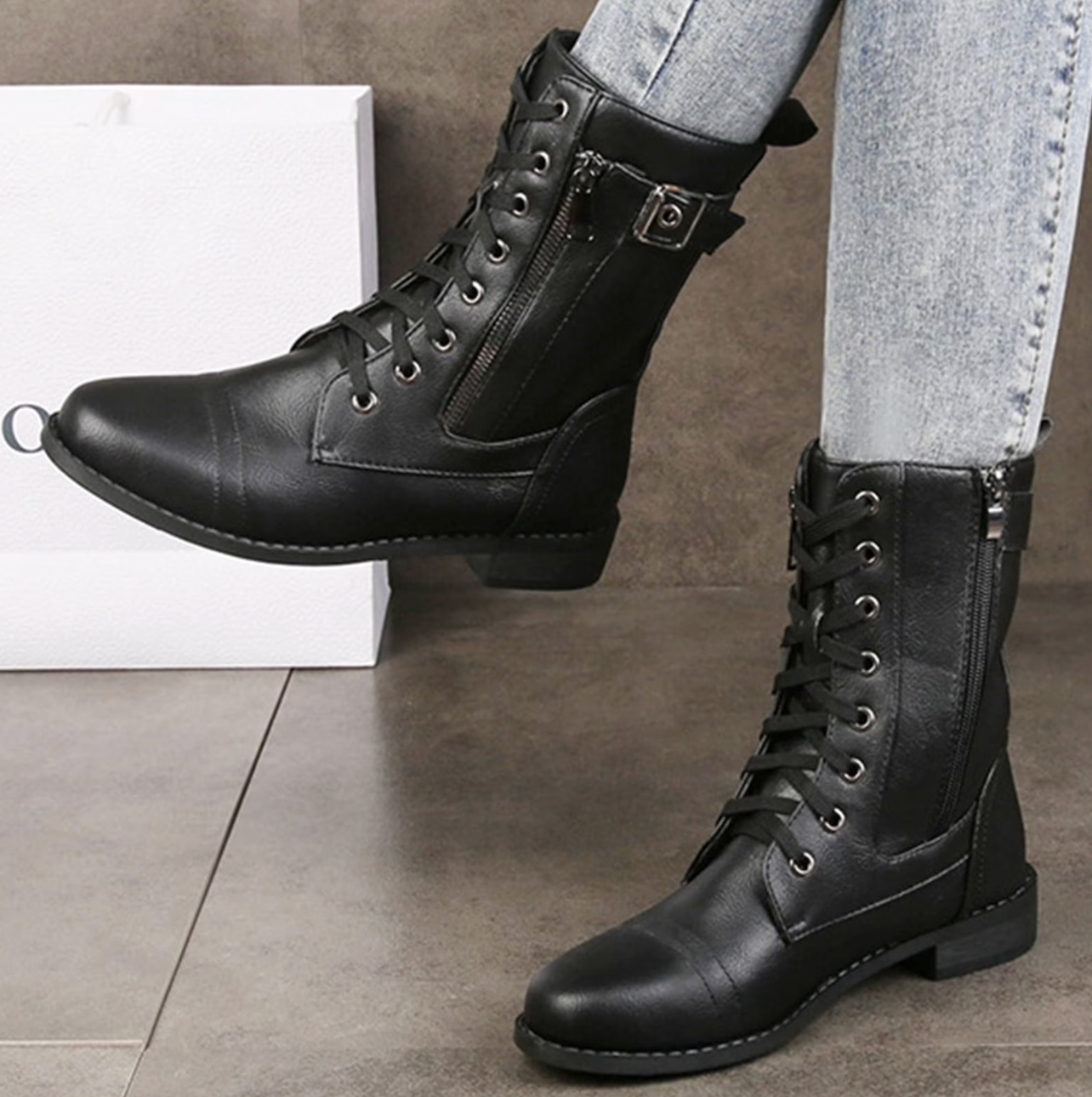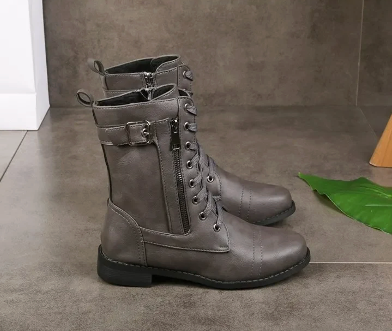 Realizzati in ecopelle di alta qualità , si distinguono per la loro linea contemporanea e femminile, arricchita da lacci frontali regolabili , cerniera laterale per una calzata rapida e fibbia decorativa che aggiunge un tocco di carattere.